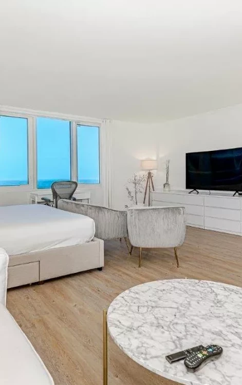 Красивая резиденция-студия на берегу океана с видом на бассейн и океан на первоклассном роскошном курорте Саут-Бич. Электричество, кабельное телевидение, Wi-Fi, вода и услуги парковщика включены в стоимость. Прачечная на каждом этаже.