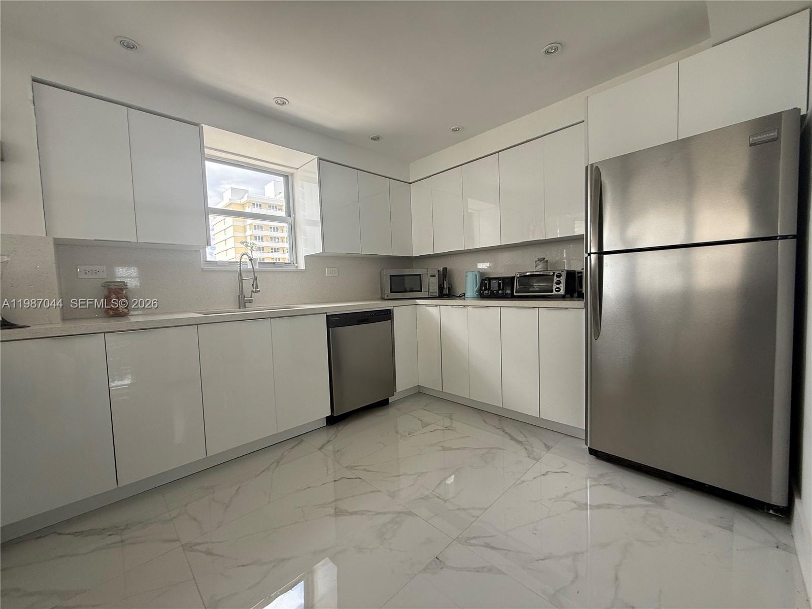 Квартира была обновлена: балконные двери, устойчивые к ураганам, современные полы, модернизированная кухонная мебель и новая бытовая техника, включая холодильник и посудомоечную машину.