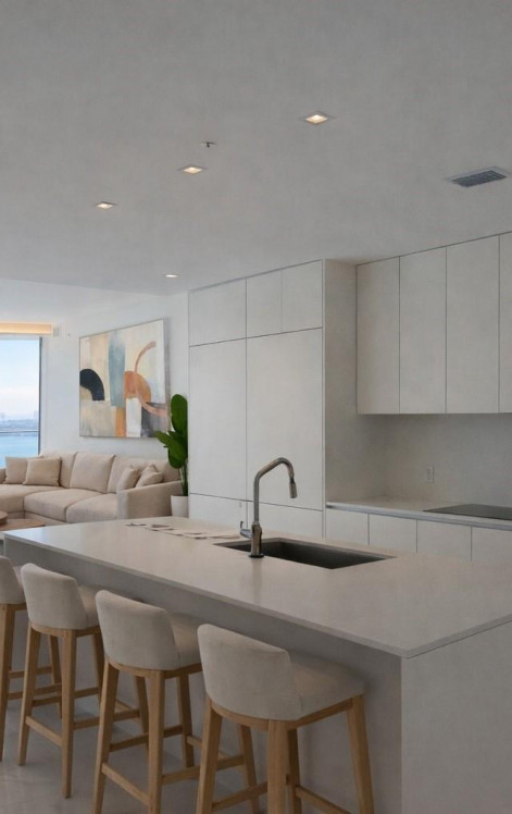 Почувствуйте себя на возвышенности над набережной в этой совершенно новой резиденции с 3 спальнями в Aria Reserve в самом сердце Эджуотера. Этот красиво отделанный дом имеет остекление от пола до потолка, просторные открытые жилые помещения и большую частную террасу, с которой открывается захватывающий вид на залив Бискейн и горизонт Майами. Современная кухня сочетает стиль и функциональность с бытовой техникой премиум-класса, элегантной мебелью и огромным островом, идеально подходящим для развлечений. Резиденция дополнена модернизированным дизайнерским освещением, электрическими шторами и встроенными шкафами в каждой спальне, что обеспечивает комфорт и изысканность. Основной люкс предлагает ванную комнату в стиле спа и просторную кладовую, а две дополнительные спальни обеспечивают гибкость для гостей, семьи или домашнего офиса.