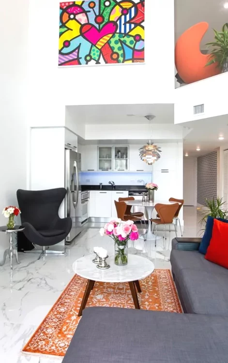 Исключительная двухэтажная резиденция в стиле лофт в Брикелле на южной башне реки, предлагающая светлую открытую жилую площадь площадью 1510 кв. Футов. Эта уникальная планировка с 2 спальнями и 2 спальнями действительно напоминает таунхаус в небе: впечатляющие потолки двойной высоты и окна от пола до потолка, наполняющие дом естественным светом. На основном уровне расположены открытая гостиная и обеденная зона, современная кухня с бытовой техникой из нержавеющей стали и элегантные дизайнерские люстры. Наверху главный люкс в стиле лофт со стеклянными стенами выходит на гостиную, создавая поразительную архитектурную особенность. Насладитесь прекрасным видом на город и реку Майами с отдельных балконов. Расположен в самом сердце Брикелла, в нескольких шагах от ресторанов, магазинов, набережной и центра города Брикелл.