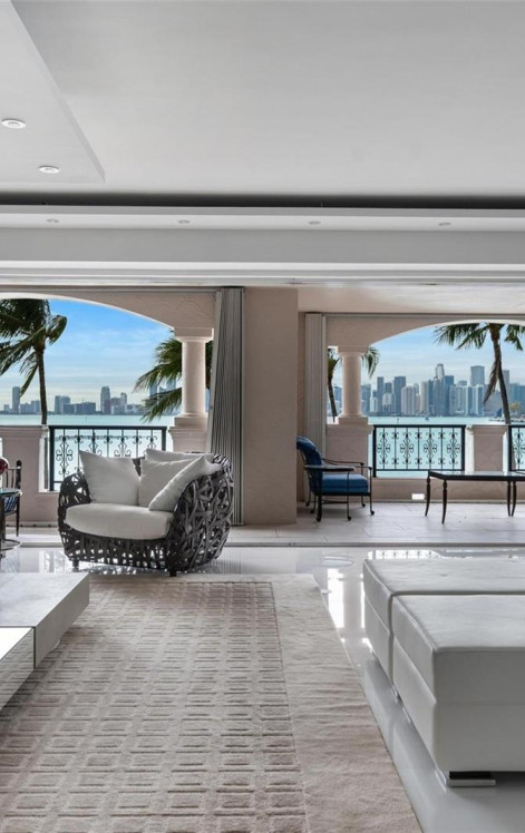 Раздвижные стеклянные двери от пола до потолка ведут на огромные террасы, предназначенные для настоящей жизни в помещении и на открытом воздухе. На обширных крытых открытых площадках есть несколько мест для отдыха и обедов, окруженных потрясающим видом на воду и знаменитым горизонтом Майами.