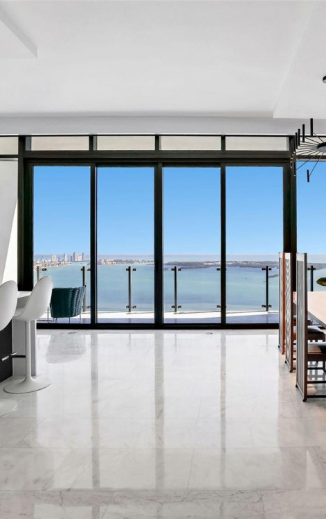 Ощутите непревзойденную роскошь в этом сделанном на заказ нижнем пентхаусе, занимающем половину 49-го этажа с индивидуальной планировкой. Высокие 12-футовые потолки открывают беспрепятственный вид на залив, океан, город и южное побережье. Обширная терраса площадью 600 квадратных футов с летней кухней представляет собой идеальное место для развлечений.