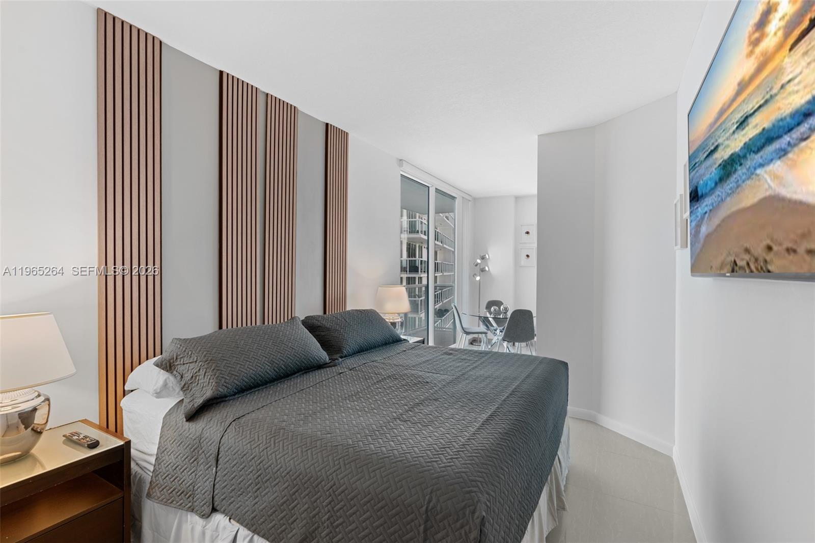 Меблированная студия, переоборудованная в квартиру с 1 спальней и 1 ванной, откуда открывается захватывающий вид на залив Бискейн и горизонт Майами. Номер с современным керамическим полом, просторной гардеробной и элегантной ванной комнатой. Кухня оборудована бытовой техникой из нержавеющей стали, включая стиральную машину и сушилку.