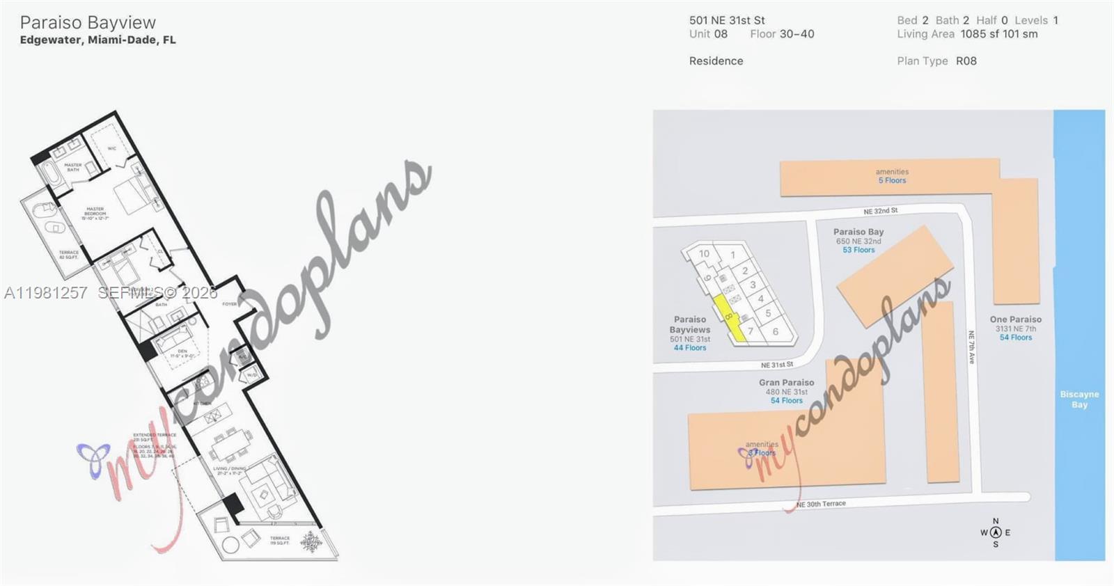 Просторная резиденция площадью 1085 кв. футов на 32-м этаже 46-этажной башни с захватывающим видом на воду, залив и горизонт в Paraiso Bayviews в престижном районе Эджуотер. Этот залитый солнцем блок с 2 спальнями, 2 ванными комнатами и гостиной выходит на юго-запад, откуда открывается прекрасный естественный свет и вид на закат над заливом Бискейн и горизонтом Майами.
