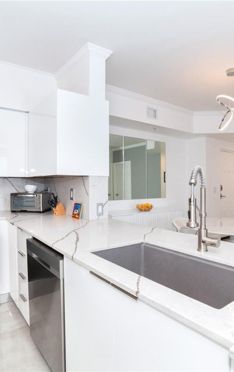 ПОТРЯСАЮЩИЙ Гранд-пентхаус с 2 спальнями и 2 ванными комнатами под ключ в самом сердце Санни-Айлс-Бич. Приходите насладиться захватывающим видом на побережье из каждой комнаты. Полностью отремонтированный в 2024 году кондоминиум отличается элегантным современным дизайном и полом из полированного итальянского керамогранита Grey Torre. Дизайнерская кухня представляет собой настоящее зрелище: шкафы с белым лаком, остров-водопад из полированного кварца Diamanto с соответствующим фартуком, изготовленная на заказ кофейня, огромная раковина Kraus и бытовая техника Samsung — идеально подходит как для повседневной жизни, так и для развлечений. Обе ванные комнаты были изысканно отремонтированы до совершенства, напоминающего спа. Гостевая ванна: фарфор Calacatta от пола до потолка, плавающий туалетный столик с белым лаком, душ с дождевой насадкой и кнопочный унитаз Swiss Madison. Основная ванная впечатляет полами из керамогранита цвета «Исландия», мраморными стенами из травертина, душевой кабиной, двойным плавающим туалетным столиком с сантехникой Moen, аптечками Kohler. Наслаждайтесь просторным балконом с полом Nu-Tech и рулонными шторами, любуясь невероятным видом на воду. Дополнительные обновления включают новые входные двери и двери HVAC, изготовленные на заказ зеркала в столовой, улучшенное освещение повсюду. Редкая возможность приобрести готовый к заселению пентхаус с роскошной отделкой, современным ремонтом и захватывающими видами на побережье. Никаких особых оценок. Просто возьмите с собой чемодан и начните наслаждаться образом жизни Санни-Айлс-Бич — всего в нескольких минутах ходьбы от океана, ресторанов интернациональной кухни, рынков органических продуктов и многого другого. Легко показать. Позвоните сегодня!