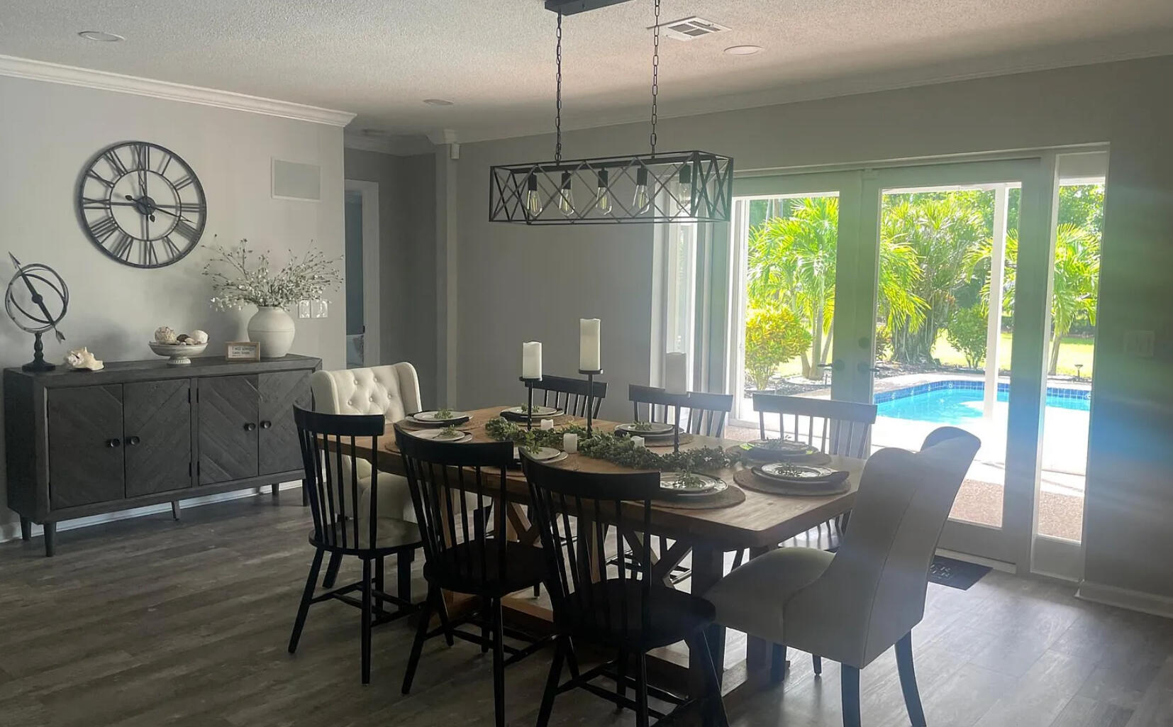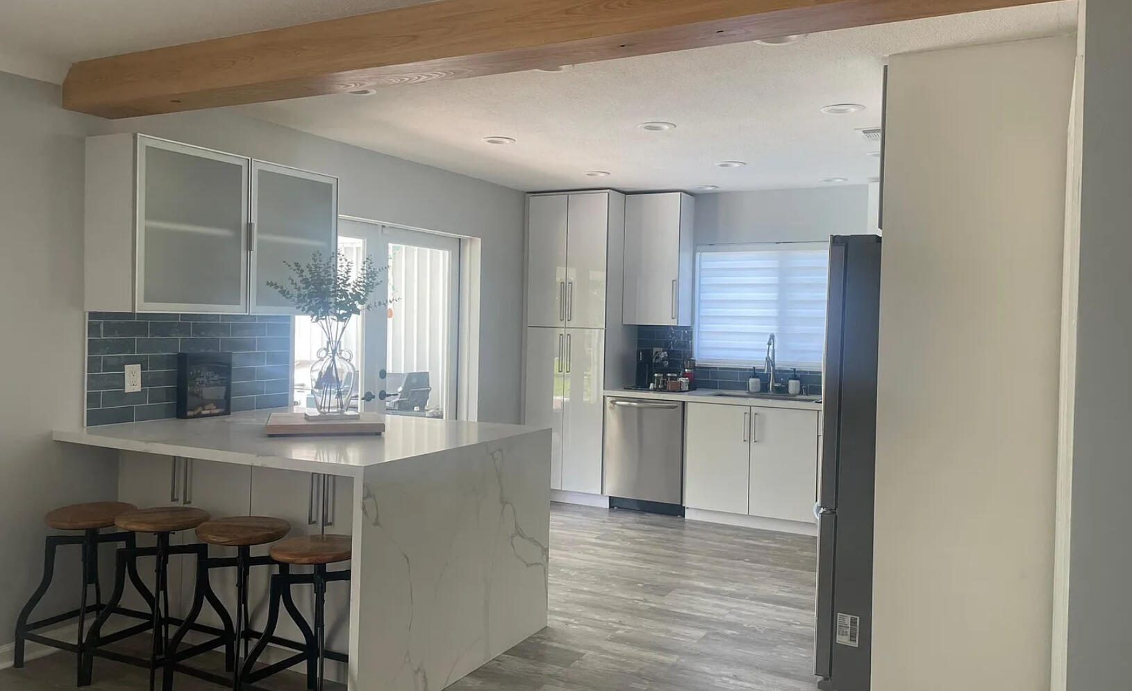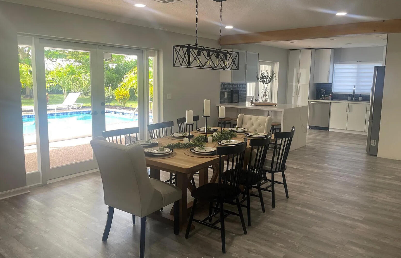 Зайдите в этот полностью отремонтированный современный оазис, расположенный в очень желанном районе Шервуд -парка на пляже Делрей. Этот яркий и воздушный одноэтажный дом предлагает открытый план этажа с керамическим плиточным полом повсюду, ударами из стеклянных стекла и полными ставнями аккордеона для душевного спокойствия. Отправляйте приготовление и развлечение в гладкой, обновленной кухне с приборами из нержавеющей стали, гранитных столешницами и множеством шкафов. Просторные жилые помещения плавно протекают в ваш частный крытый патио и блестящий бассейн, идеально подходящие для расслабляющих или хостинговых.