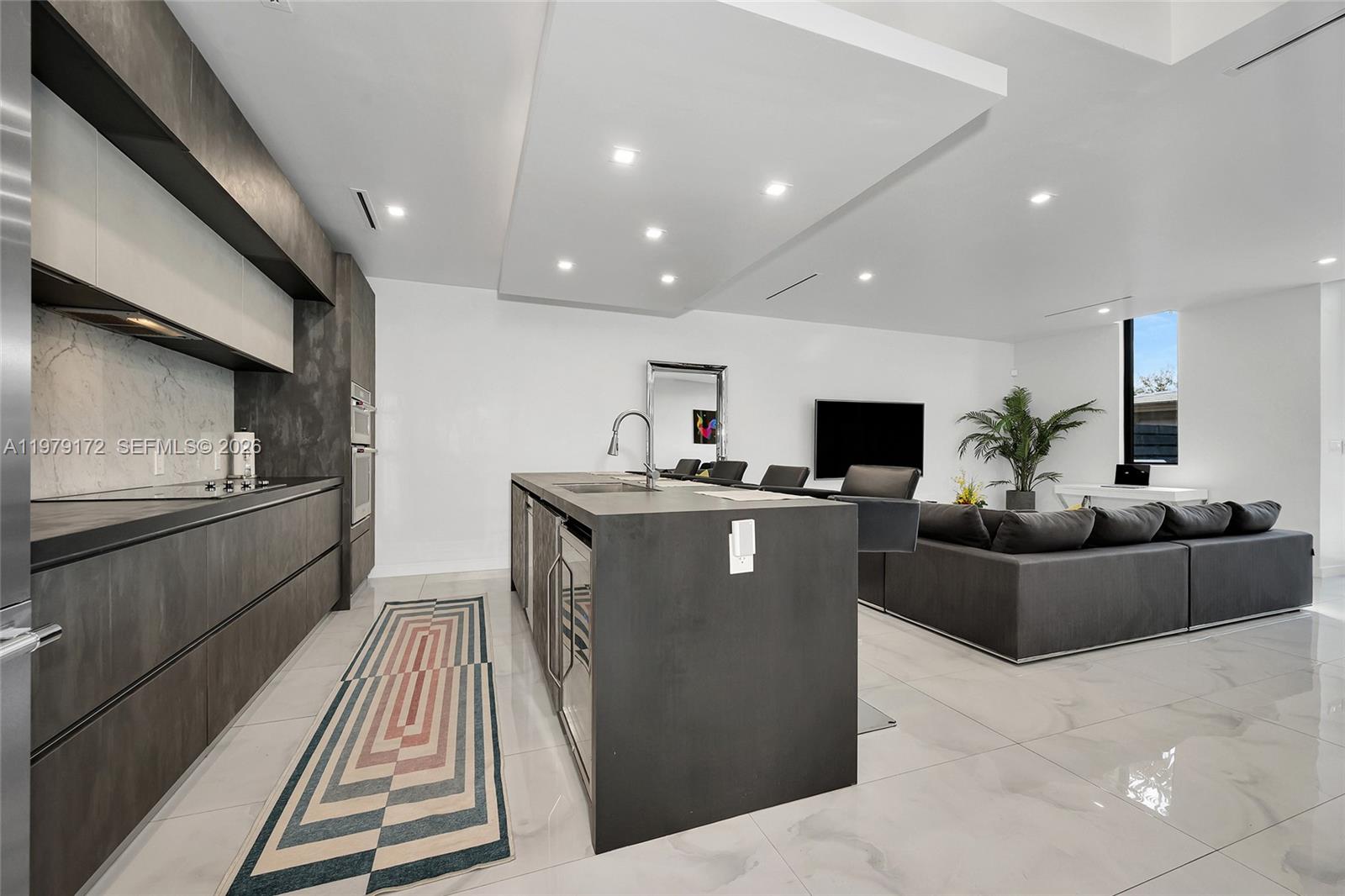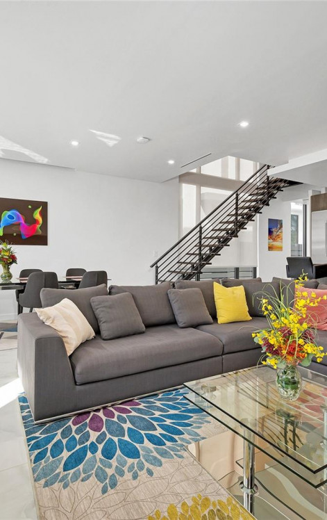 Дом демонстрирует потолки высотой 10 футов, яркую планировку открытой планировки и впечатляющие ударные стеклянные окна от пола до потолка, которые наполняют пространство естественным светом. Современная кухня в европейском стиле с высококлассной мебелью и бытовой техникой премиум-класса идеально подходит как для повседневной жизни, так и для развлечений.