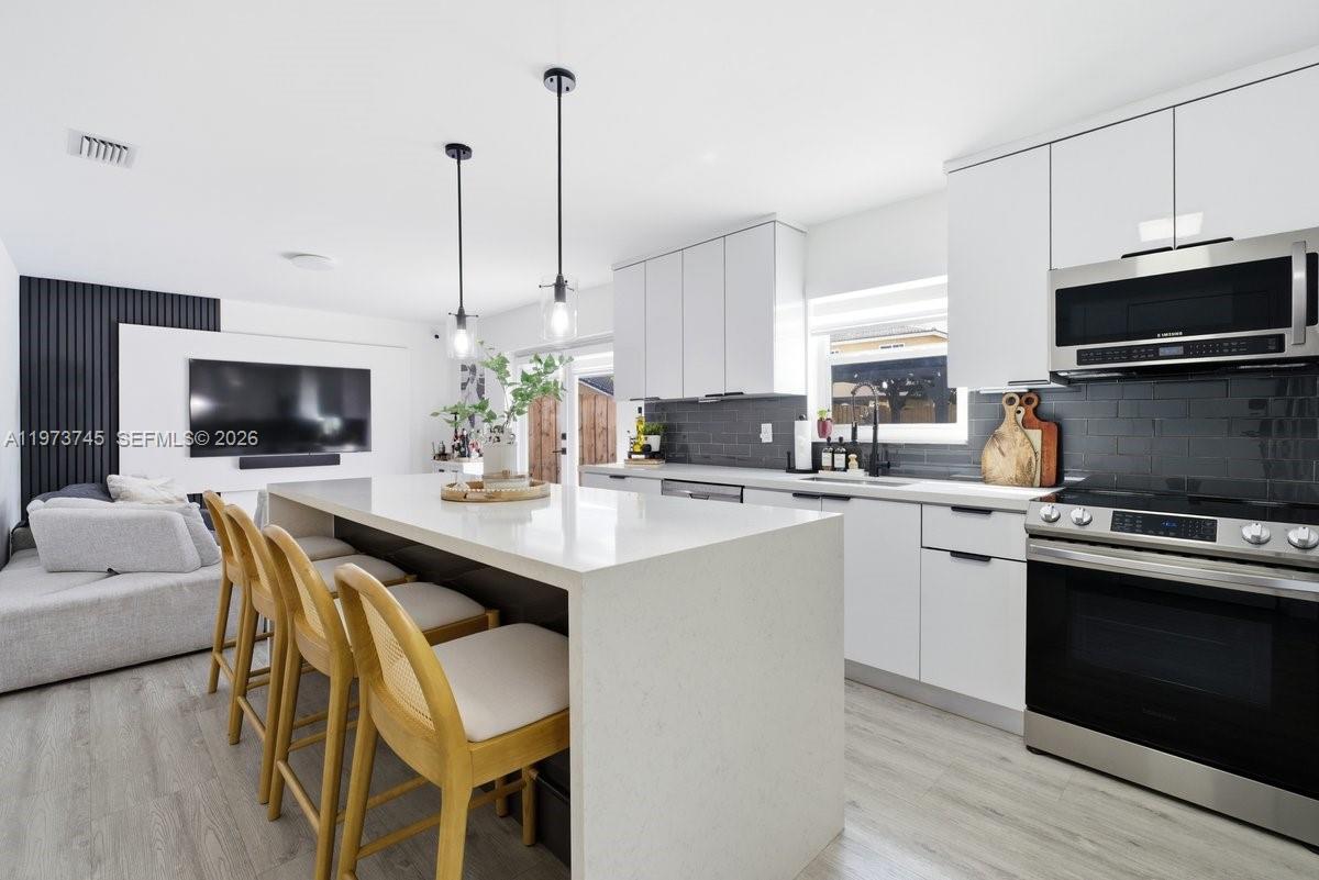 Просторный дом на одну семью с 4 спальнями, 2,5 ванными комнатами и частным бассейном, идеально подходящий для комфортного проживания и развлечений. Наслаждайтесь светлой открытой планировкой с просторной гостиной и столовой, идеально подходящей для отдыха или приема гостей. Современная кухня предлагает достаточно места и функциональную планировку для ежедневного приготовления пищи. Выйдите на красивый задний двор со сверкающим бассейном, который отлично подходит для барбекю по выходным и развлечений на свежем воздухе. В стоимость входит уход за бассейном и вывоз мусора, искусственный газон, система камер (опция).