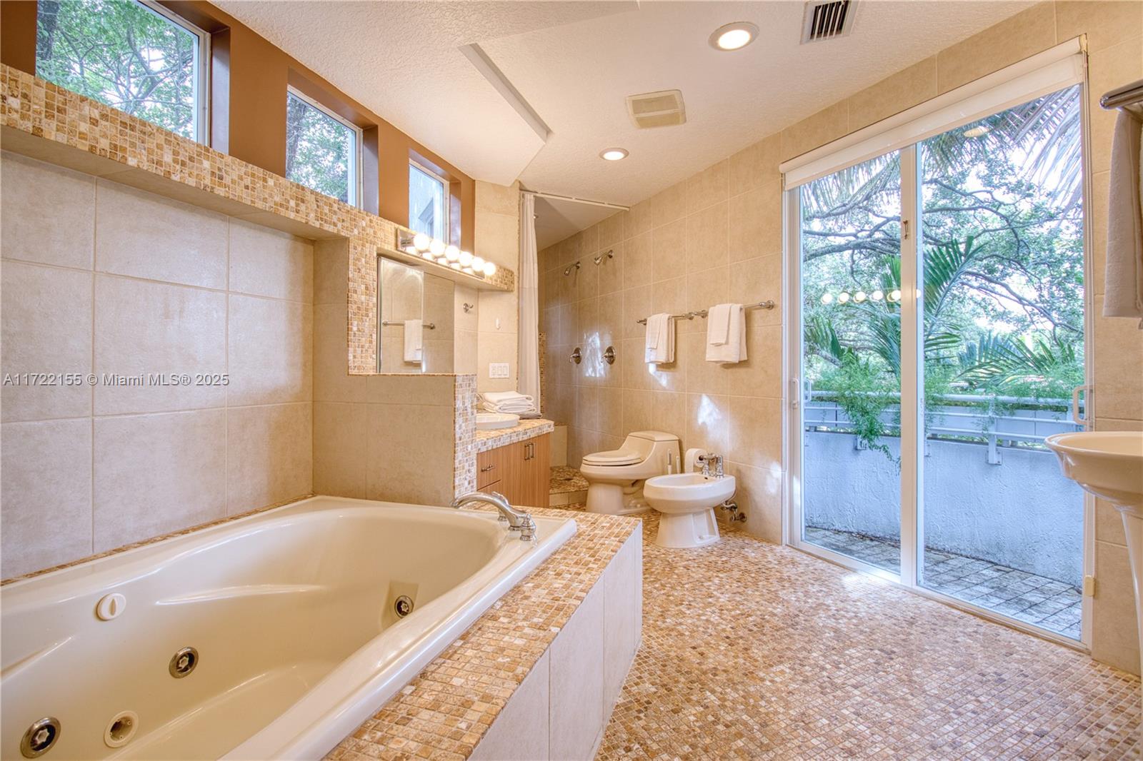 В собственности есть по 2 BRS с кроватями с королевой и 3 -й BR с двумя двумя кроватями, 1 футоном на чердаке. Две полные ванные комнаты расположены наверху, а третья полная ванная комната расположена внизу с доступом к бассейну.