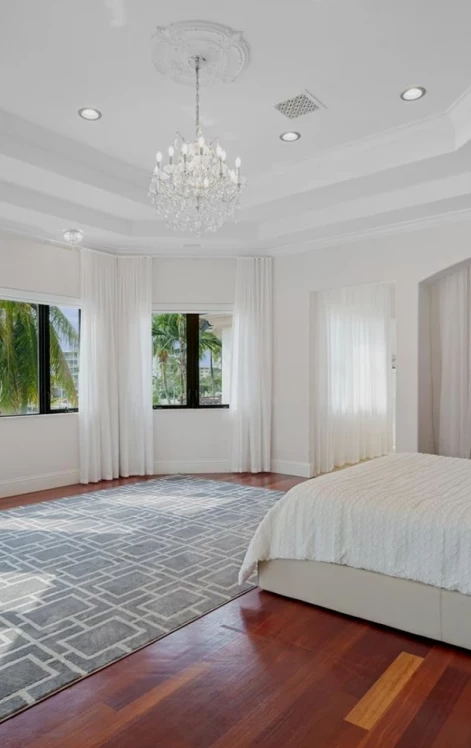30-футовые окна от пола до потолка, из которых открывается захватывающий вид на воду. Интерьер дома выполнен со вкусом