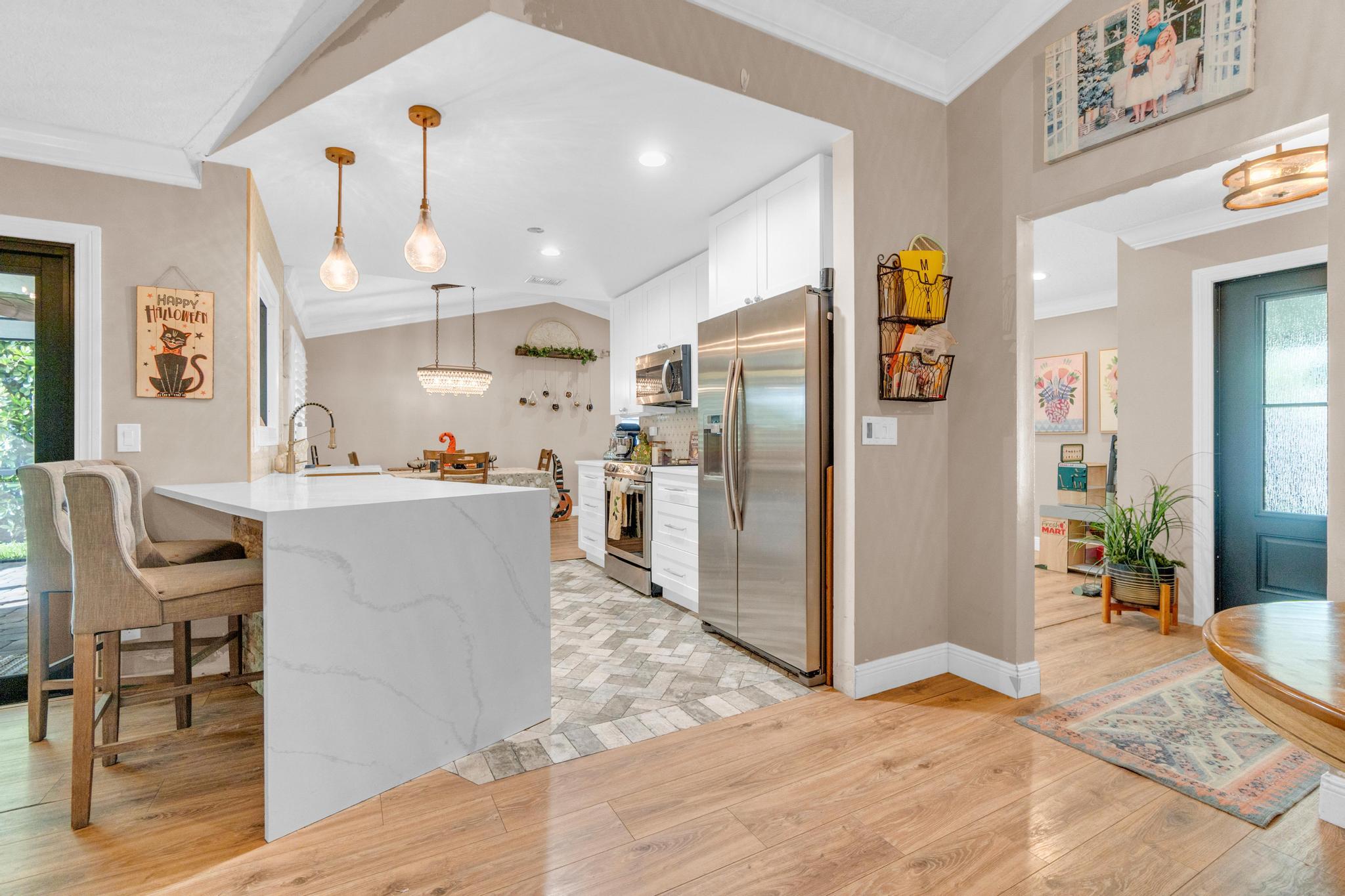 Красивый дом на берегу озера с 3 спальнями и 2 ванными комнатами в престижном районе Бока Виндс! Ударные окна и двери для душевного спокойствия. Особенности включают кафельный и деревянный ламинат, высокие потолки и гостеприимный холл. В основном люксе есть гардеробная и отдельная ванная комната, а планировка спальни обеспечивает пространство и уединение. Наслаждайтесь выложенным брусчаткой патио с видом на озеро, огороженным двором и проводкой для джакузи / гидромассажной ванны. Дополнительные особенности включают стиральную машину и сушилку, электрический водонагреватель, детекторы дыма и кондиционер с сентября 2020 года. Этот дом сочетает в себе комфорт, безопасность и прекрасный вид на воду в популярном месте.