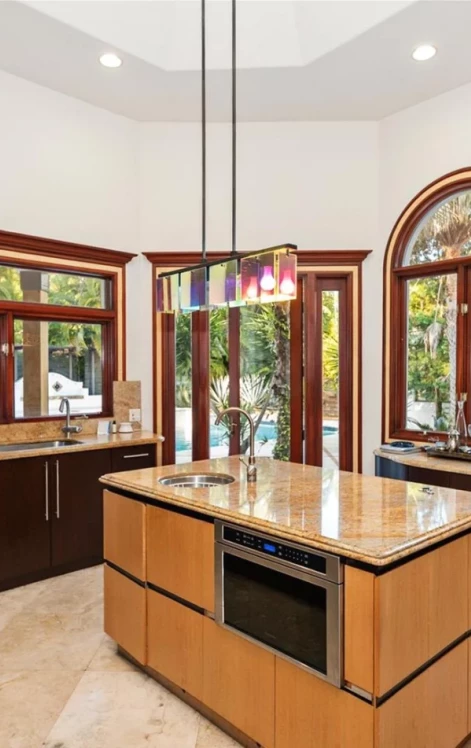 Портик с мавританской аркой ведет к захватывающей дух решетчатой входной двери из красного дерева с ручной резьбой под янтарным фонарем, произведением искусства, прежде чем вы даже войдете внутрь. Возвышающаяся восьмиугольная ротонда снаружи украшена фреской с изображением неба, расписанной вручную, кованой люстрой, полами из травертина, колоннами из кораллового камня, потолками из кипарисовых балок и монументальным камином из травертина ручной работы.