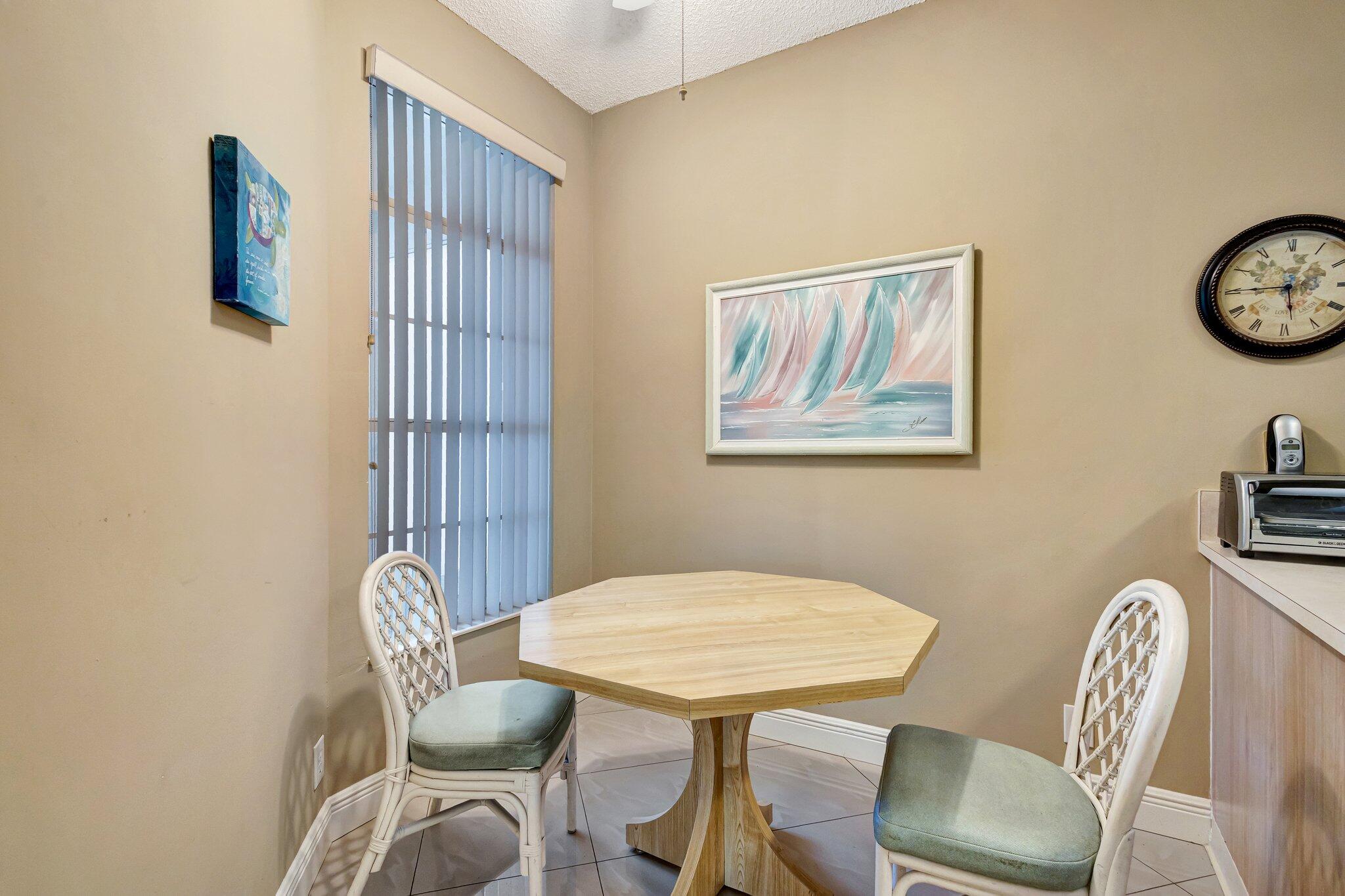 Ознакомьтесь с жизнью в восхитительном районе с домом, который ждет вашего личного прикосновения. Основная жилая зона предлагает много места, в то время как кухня щедро обозначена, чтобы включить уголок для завтрака. Вы найдете потрясающую фарфоровую плитку в главном жилом пространстве, дополненную вкусом ламината в спальнях. Рядом с основной жилой зоной находится офис/ 3 -я спальня. Задний двор обеспечивает частное отступление, чтобы насладиться прекрасной погодой во Флориде. Крыша, замененная в 2022 году, окна устойчивы к воздействию, некоторые имеют ставни. Дверь гаража была обновлена в 2020 году, а система кондиционирования заменена в 2018 году. Низкая плата за HOA покрывает кабель, мощность, внешнюю картину каждые 7 лет, ландшафтный дизайн, канализация, мусорные услуги, рассол, теннис, корты, 2 бассейна и борьба с вредителями.