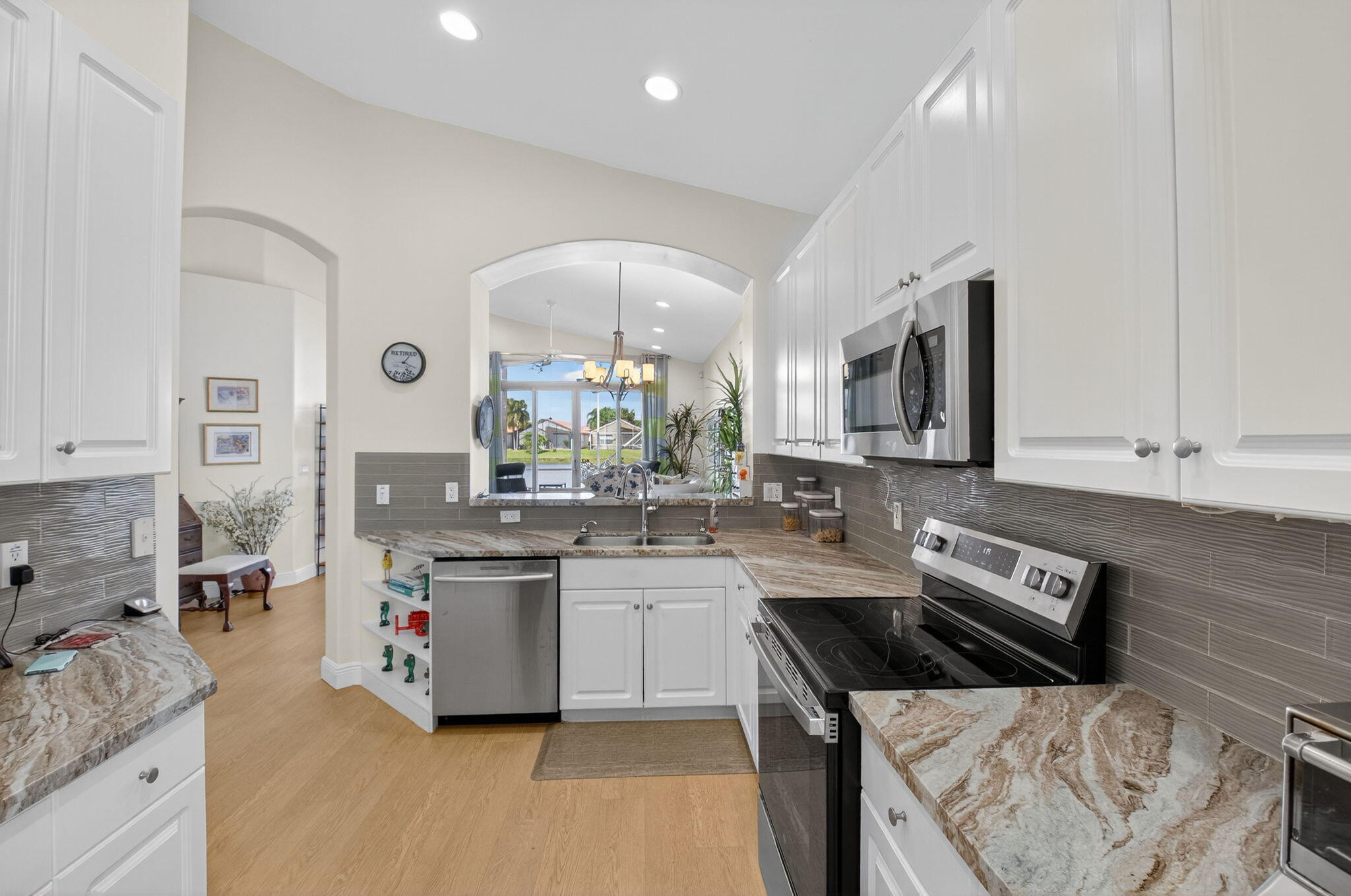 Наслаждайтесь лучшим из 55+, живущих в этом прекрасно модернизированном доме с 2 спальнями и 2 ванными комнатами на берегу озера в престижном районе Делрей-Бич в Бискайе. В этой безупречной резиденции есть ударопрочные окна и двери, полноценный генератор и роскошные виниловые полы. Из гостиной и столовой открытой планировки открывается потрясающий вид на большой внутренний дворик и сверкающую воду. Просторный основной люкс с просторными встроенными шкафами и ванной комнатой с двумя туалетными столиками, глубокой ванной и отдельным душем. Бискайя предлагает клуб в курортном стиле. Бассейн, теннис, пиклбол, фитнес-центр и полный календарь мероприятий - все в нескольких минутах от магазинов, ресторанов и пляжа. Этот дом сочетает в себе комфорт, функциональность и очарование Флориды.