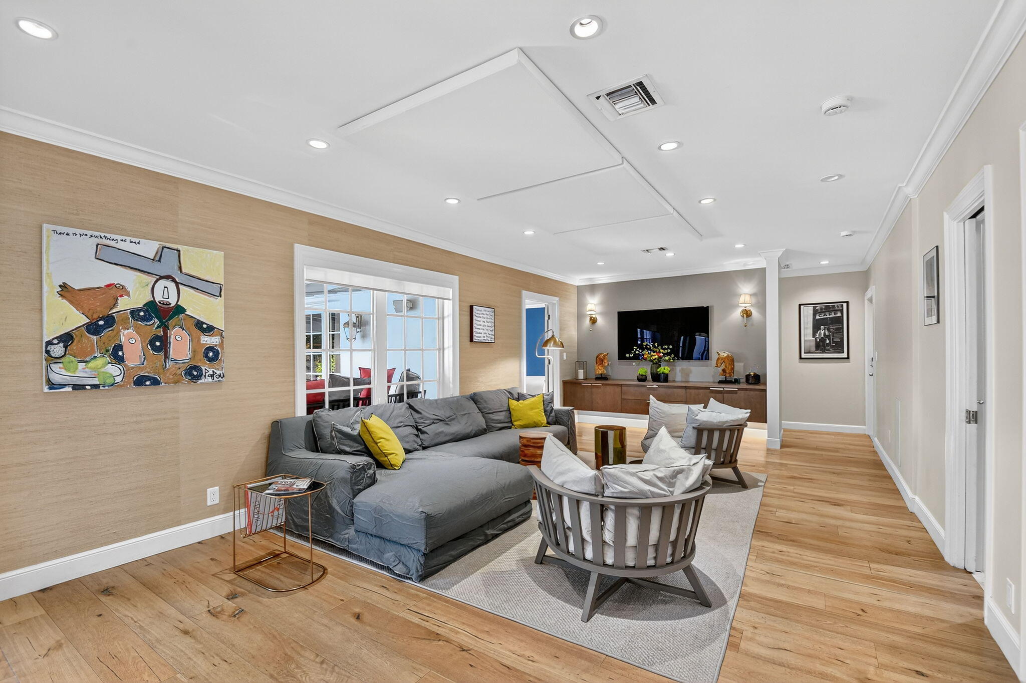 ПОТРЯСАЮЩИЙ дом на озере Ида, расположенный на угловом участке с более чем 1/3 акра пышного тропического ландшафта и жилой площадью более 3000 квадратных футов. Эта красавица с 3 спальнями и 3 ванными комнатами была полностью отремонтирована с высококачественной отделкой и имеет все это! Внутри вас встречает нейтральный и успокаивающий декор, который подчеркивается дощатым полом из белого русского дуба, который проходит по всем основным жилым помещениям. Мастерски спроектированная кухня открыта для гостиной/обеденной зоны и включает в себя изготовленную на заказ деревянную мебель, великолепные кварцитовые столешницы, первоклассную бытовую технику Sub-Zero/Wolf с 6-конфорочной двухтопливной плитой и сковородкой, 42-дюймовый холодильник Subzero и большой остров с фартуком, раковиной, ящиком для микроволновой печи, глубокими ящиками и многими другими улучшениями. В соседнем кабинете есть бар/зона обслуживания с той же мебелью, что и на кухне.