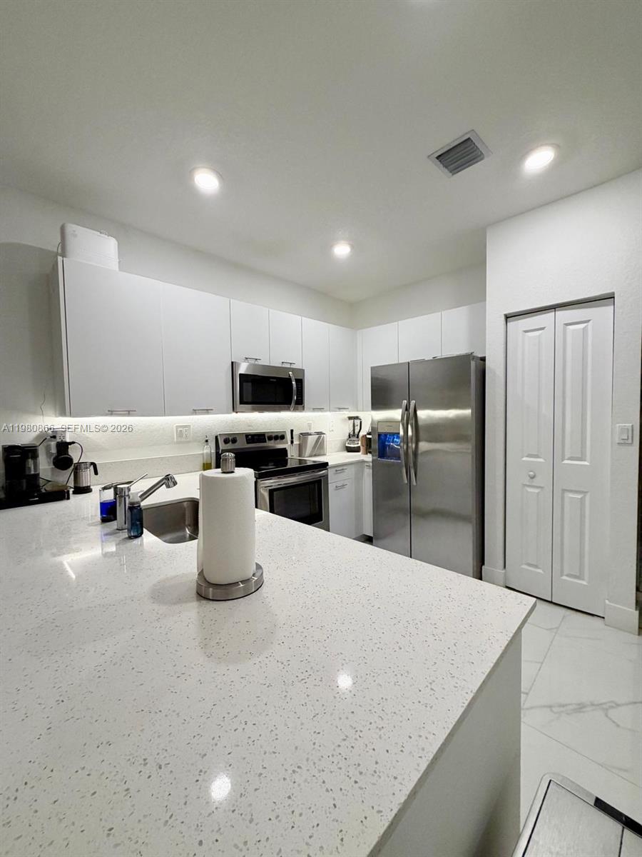 Красивый угловой дом с 3 спальнями и 3 ванными комнатами с современным интерьером с итальянской керамогранитной плиткой на первом уровне, ударопрочными окнами, стеклянными лестничными перилами, построенным по индивидуальному заказу винным погребом и модернизированной системой безопасности. В основном люксе имеется большая гардеробная, двойная раковина и душевая кабина. Кухня открытой планировки оснащена бытовой техникой из нержавеющей стали и барной стойкой с кварцевой столешницей. Полностью обновленный задний двор с бетонным полом и очаровательной деревянной беседкой. В доме также есть гараж на 1 машину, подъездная дорога на 3 машины и большая гостевая парковка. Расположен в закрытом поселке с удобствами курортного типа, включая клуб, фитнес-центр, бассейн, детскую игровую площадку и парк для собак. Отличное расположение: 7 минут до I-95 / 4 минуты до колледжа Майами-Дейд / 10 минут до парка Амелия и скоростной автомагистрали Пальметто / 15 минут до центра города / 18 минут до Дорала / 20 минут до аэропорта Майами. Низкая ТСЖ, не требуется страховка от наводнения, а подключение стиральной/сушильной машины удобно расположено на втором этаже. Лампа для столовой и стиральная машина/сушилка не входят в стоимость покупки.