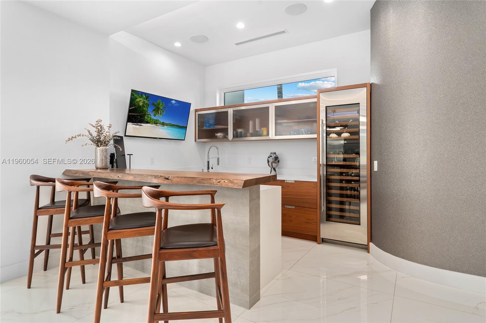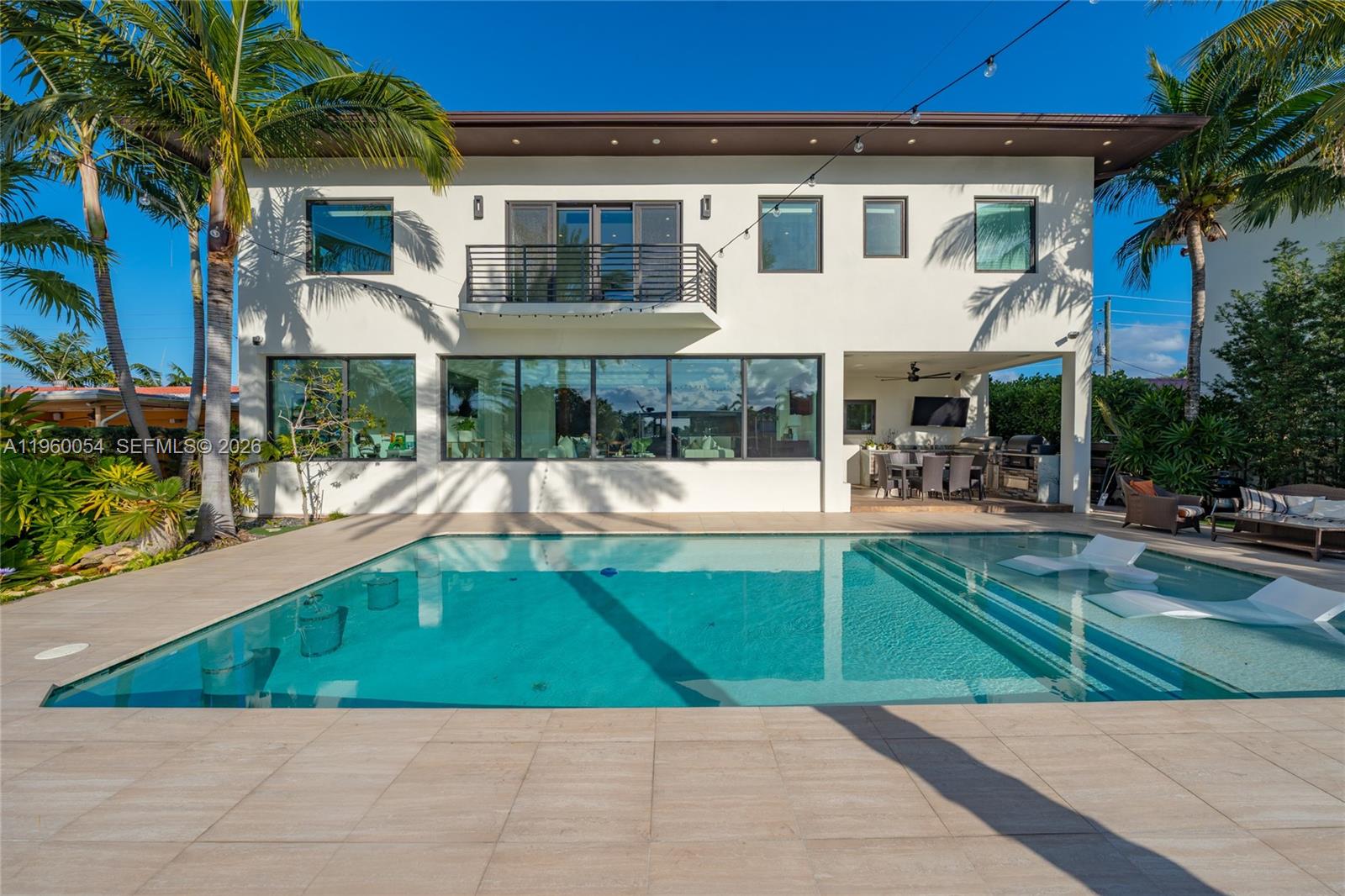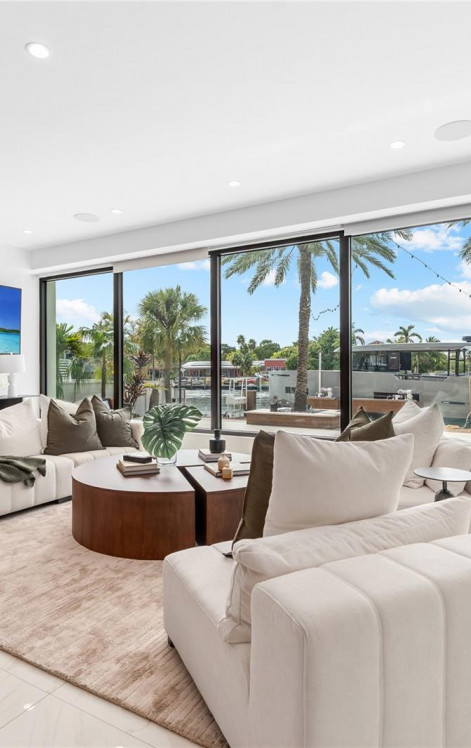 В этой исключительной резиденции на набережной сочетаются современный дизайн, продуманный масштаб и поистине редкий вид. Дом, обрамленный стеклом от пола до потолка, открывает широкий вид на воду, окруженный пальмами, который больше похож на частную лагуну, чем на типичный водный путь, обеспечивая вид на закат, уединение и чувство спокойствия, которое становится все труднее найти.