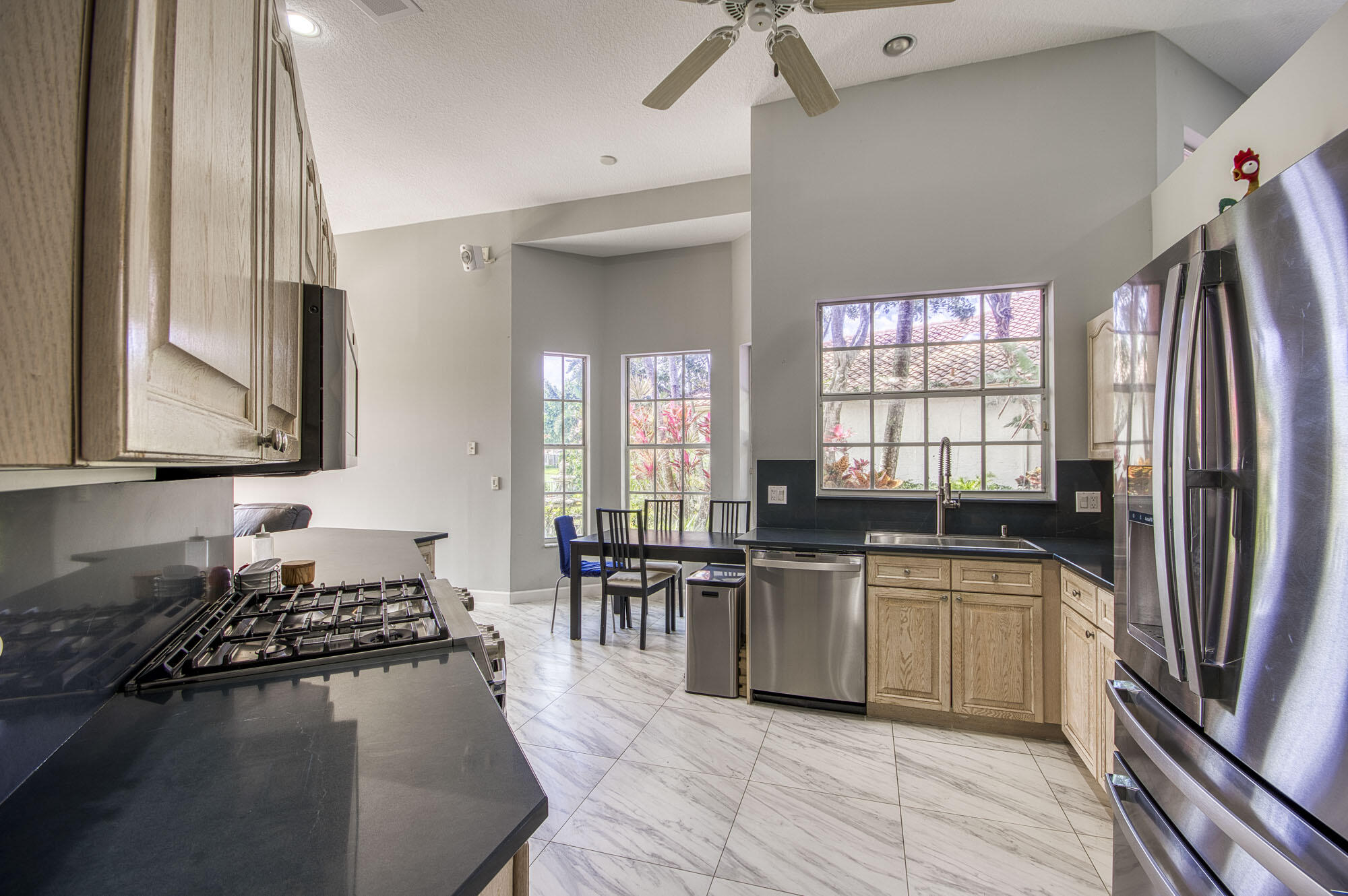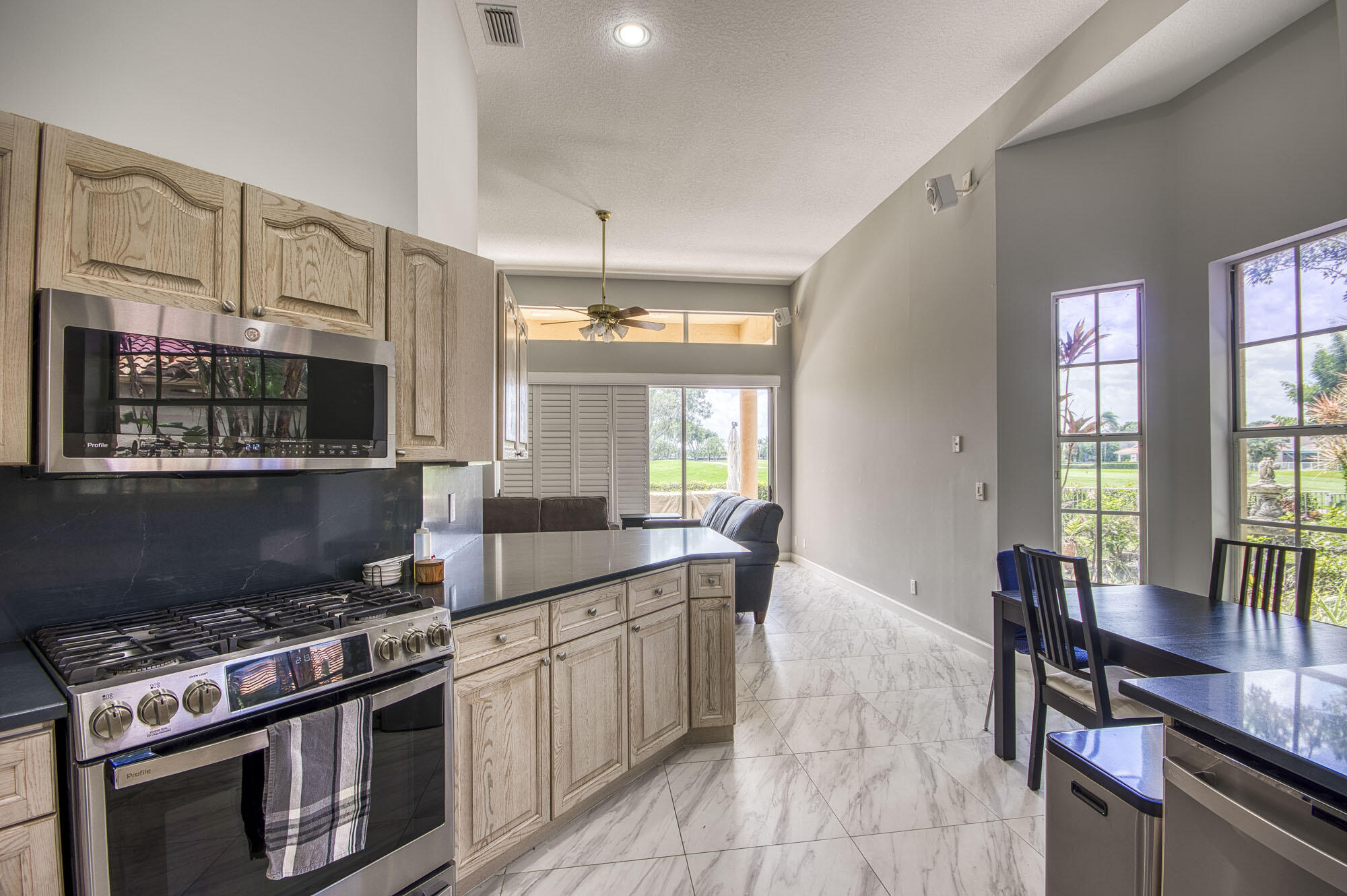 Расположенный на тихой тупике, этот прекрасно удержанный дом предлагает потрясающий вид на поле для гольфа и пышный тропический ландшафт. Просторная открытая планировка оснащена сводчатыми потолками и новыми фарфоровыми плиточными полами повсюду, с яркой и воздушной кухней, которая включает в себя приборы из нержавеющей стали 2022 года, новые столешницы из черного кварца и множество пространств для шкафа. Семейный номер открывается для большого внутреннего дворика, идеально подходящего для развлечения или отдыха, наслаждаясь видом на недавно переработанный курс наследия, фарватера № 1 & #9. В Master Suite есть потолки для лоток, большие окна с естественным светом и гардеробная, в то время как мастерская ванна включает в себя недавно обновленный душ, ванна в замачивание, двойные тщеславия и уникальное окно витража Ibis. Задний двор полностью озеленен