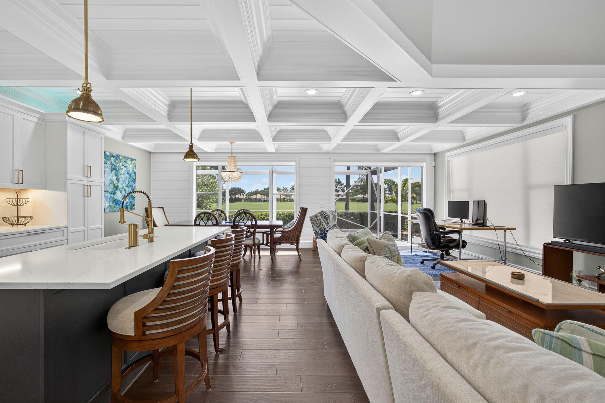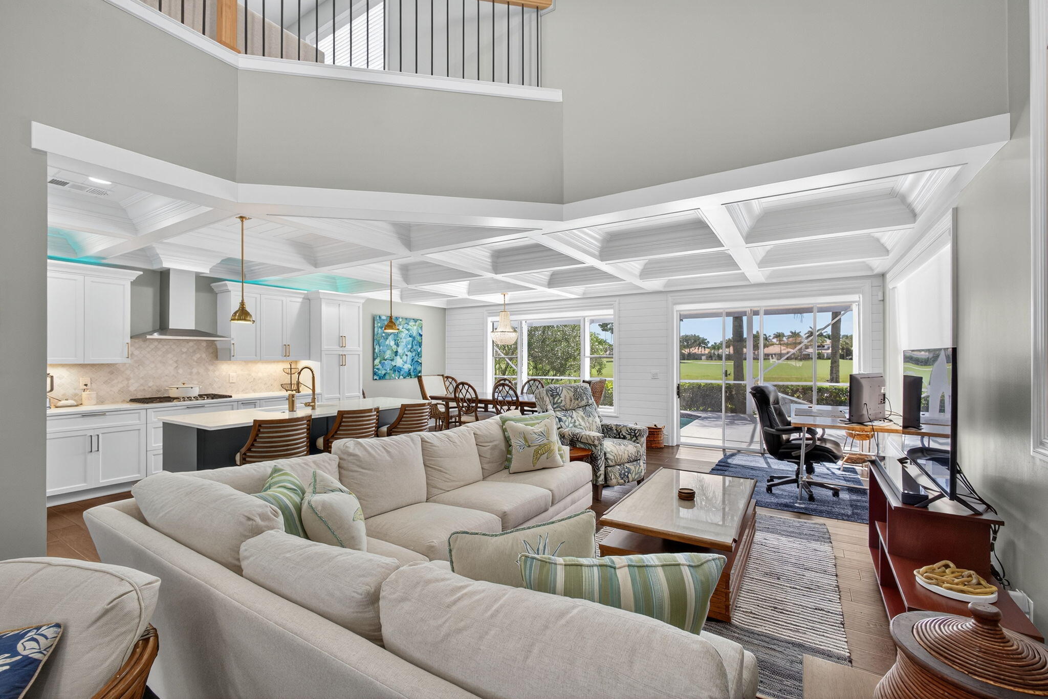 Этот великолепный двухэтажный дом, полностью отремонтированный в 2021 году, излучает современную прибрежную элегантность. На главном уровне находится отдельная главная спальня с ванной комнатой в стиле спа, а наверху расположены две просторные спальни и универсальный чердак. Высокие кессонные потолки, дизайнерское освещение и открытая, просторная планировка наполняют дом невероятным естественным светом и свежей прибрежной атмосферой. Высококачественная отделка и продуманные детали создают изысканную, но комфортную атмосферу. Насладитесь захватывающим видом на воду и поле для гольфа практически из каждого номера, а затем прогуляйтесь до здания клуба и насладитесь удобствами мирового класса в The Club at Ibis. Готовый к заселению и со вкусом переосмысленный, этот дом действительно является экспонатом. Расположен в северо-западном углу WPB, всего в 20 минутах от аэропорта PBI.